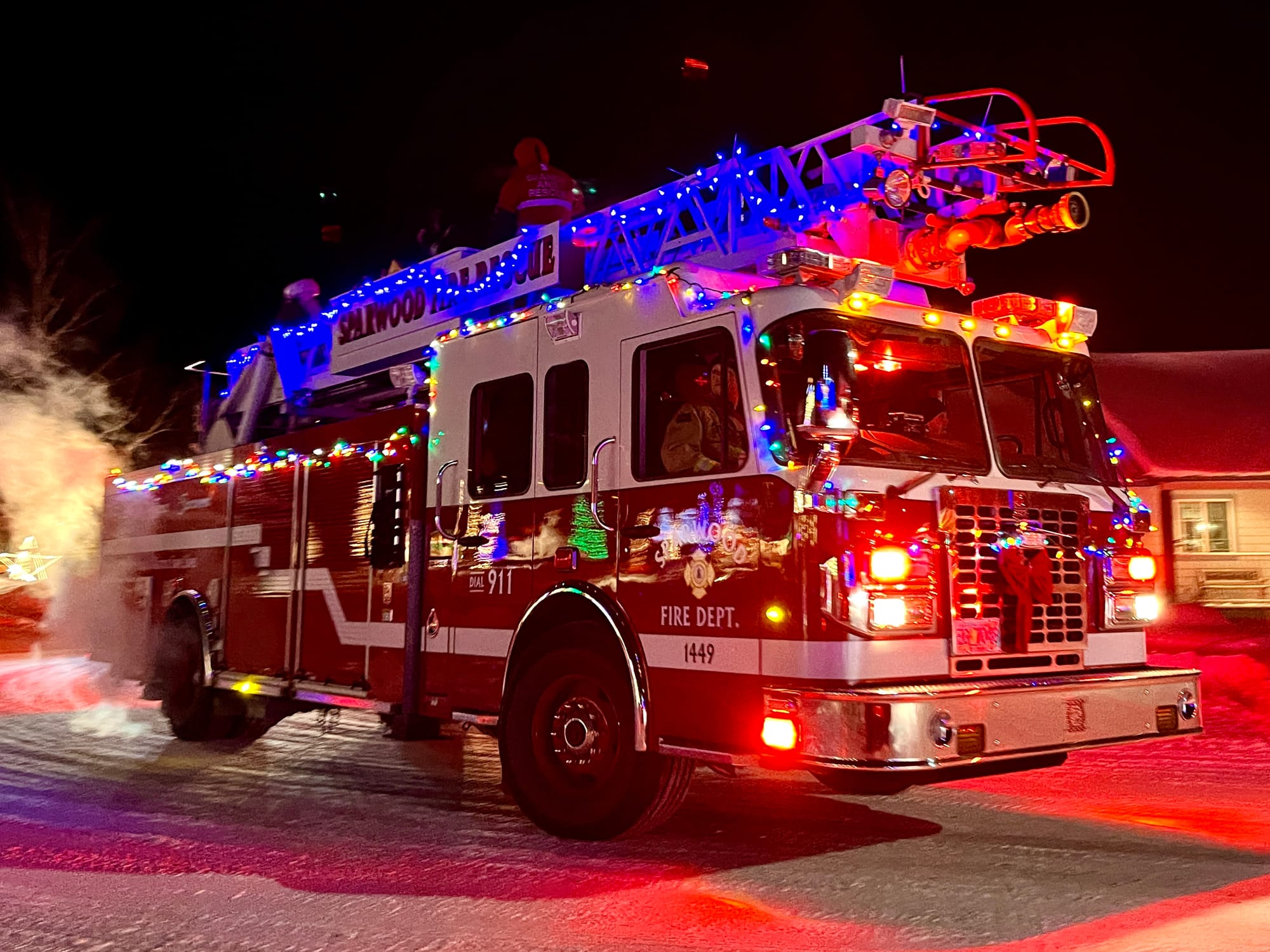 “Tonight, we drove to the next town to do our annual Christmas lights tour. The Christmas lights in our town are always a bit of a letdown, especially considering it’s the “fancier” one. That meant I got 40 minutes total of driving time where I could blast some fun tunes, like this collaboration (I think it’s cooler to say “collab,” but I’m old(school)) between Ekali and Zhu. My 6-year-old likes to listen to music as loud as I, but his younger brother doesn’t share our fondness for loud volumes. Luckily, I’m the mom and the driver, and he’s strapped into a car seat in the back, so I win, and he tolerates it (we switched to Christmas music for the light tour). Luckily, we timed our tour when the local fire and rescue team was doing their “Santa Claus Cruise” through town. If you’ve never seen Santa Claus riding on top of a firetruck at -30 degrees celsius, throwing out full-size chocolate bars (we got 5!) to near hypothermic children, time to visit small town British Columbia.